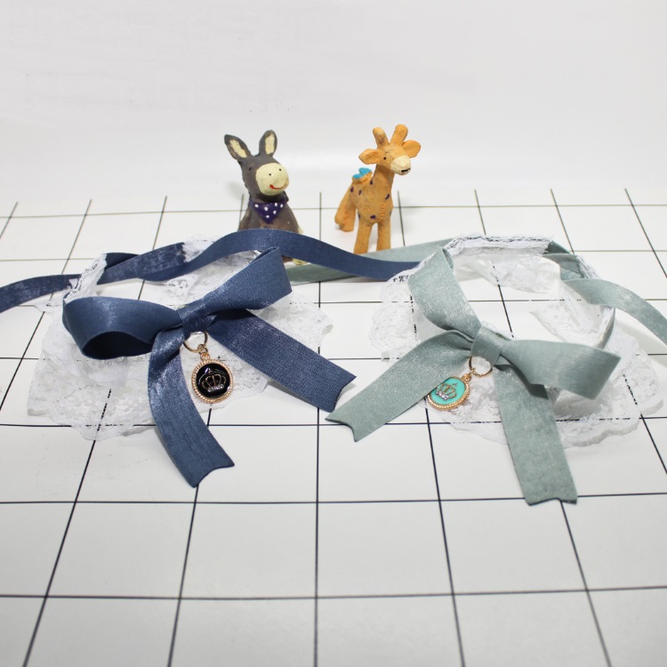 Pet Lace Bowknot Bib Small Dog Saliva Towel Light And Breathable Blue L